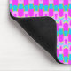 Ein Mouspad mit einem farbigen geometrischen Muster in magenta, blau, gelb.