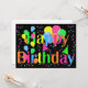 FARBHAFTE, GLÜCKLICHE KARTE MIT MEHRFARBIGEN BALONS PARTY HATTEN UND STERNEN MIT SCHWARZEM RÜCKERDGESCHOSS