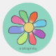 Grafische Blume mit 8 Blütenblättern in verschiedenen Farben. Text "ein farbiger Tag". Teilen Sie die Freude, initiieren Sie gute Momente! Solide Hintergrundfarbe kann angepasst werden.