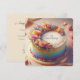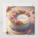 Schöne Jubiläumskuchen feiern Ihre Anzahl von Jahren. Vollständig bearbeitbare Kopie auf der Rückseite. Schönes, farbenfrohes Blumengesteck mit regenbogenfarbenen Seiten.