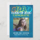 Trendy Retro-Stil blau verbrannt orange gelb bunt 8. Klasse Mittelschulankündigung Karte mit benutzerdefinierten Fotos Collage. ++++++++++++++ Persönliche Gestaltung mit Graduiertenname, Abschluss Jahr, Schulname, 5 Fotos und Text auf beiden Seiten!