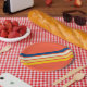 Farbige 70er 80er Retro Streifen Pappteller