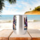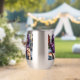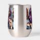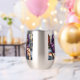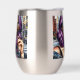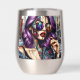 Einzigartige Ai-Kunst, die eine wunderschöne moderne Frau mit lila Haar darstellt, roter Lippenstift, Sonnenbrille mit Reflektion, gestritzelte Kunst im Stil des Pops Art Comic.
