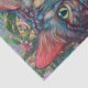 Eine farbenfrohe Abbildung einer Katze in hellen Farben und Blumenmustern. Ideal für Geschenkverpackungen oder Dekodierung und Handwerksprojekte.