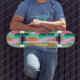 Ein elegantes abstraktes Muster aus sanftem Pfefferminzgrün, Rosa rot, knusprig weiß, schwarz und schimmernden goldenen Pinselstrichen Skateboard. Diese moderne Komposition verbindet Pastelltöne und metallische Akzente zu einer luxuriösen, femininen und künstlerischen Ästhetik - perfekt für Frühlings- und Sommerthemen, abstrakte Liebhaber und zeitgenössische Designbegeisterte.