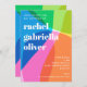 Diese moderne Bat-Mitzwa-Einladung bietet farbenfrohe Blöcke und eine saubere Typografie für einen frischen, selbstbewussten Feierstil. Die lebendige Farbpalette sorgt für ein energiegeladenes, aber dennoch elegantes Aussehen, das Spaß macht, zeitgemäß und altersgerecht ist. Ideal für Familien, die nach einem modernen jüdischen Feierdesign suchen, das heraussticht und dennoch zeitlos wirkt.
