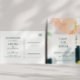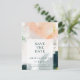 Diese farbenfrohe abstrakte Save the Date Postkarte ist perfekt für Ihre einzigartige moderne Hochzeit. Handgemalt mit strukturierten Pinselstrichen aus dunklem Smaragdgrün, Pfirsich und Senf, alles überlagert mit einem minimalistisch transparenten Quadrat, ist es sicher, Ihrem Anlass ein einfaches, aber rustikales bohemianisches Gefühl zu geben.