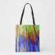 Die Tasche mit einem Überdruck in farbenprächtiger abstrakter Form. Sie werden stolz sein, dies allen Freunden zu zeigen, und Sie können auch Ihren Namen an der Vorderseite hinzufügen. Dies wurde aus einem Bild von Bäumen bearbeitet.