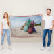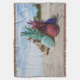 Drei farbenfrohe Ananas am Sandstrand, türkisblau, rot und blau.