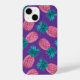 Farbenfrohe Ananas Muster auf violettem Hintergrund.