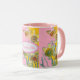 Handgemalte, gelbe Tasse in Rosa. Daffodil blumenreich, mit einem vollständig anpassbaren Damennamen. Ein herrliches Blumendesign in Aquarell. Entworfen aus meinen ursprünglichen Aquarellmalereien, die ich aus meinem eigenen Blumengarten gemalt habe.