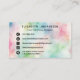 Mit unserer farbenfrohen Watercolor Dusty & Black Typografy Name Business Card schaffen Sie einen beruflichen und künstlerischen Eindruck! Der lebendige pastellfarbene Aquarellhintergrund Set einen kreativen Ton, während die Vorderseite Ihnen lasse, Ihren vollen Namen in eleganter schwarzer Kalligrafie zu personalisieren, zusammen mit Ihrem Firmennamen, Slogan oder Beruf. Die Rückseite setzt das Design fort und bietet Platz für alle Ihre Kontaktdaten, einschließlich Adresse, Telefonnummer, Website, Social Media und E-Mail. Ideal für Unternehmen in den Bereichen Reinigung, Bau, Einzelhandel, Malerei und mehr! Stell dich heraus und zeig deine Marke stilvoll.