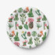 Farbige Aquarellkaktus und Sukkulenten Blume Pappteller