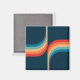 Doppelbögen im Retrostil geometrische Musterdarstellung mit türkisfarbenem, blauem, rotem und beigefarbenem Streifen auf dunkelblauem Hintergrund.