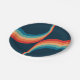 Doppelbögen im Retrostil geometrische Musterdarstellung mit türkisfarbenem, blauem, rotem und beigefarbenem Streifen auf dunkelblauem Hintergrund.