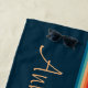 Doppelbögen im Retrostil geometrische Musterdarstellung mit türkisfarbenem, blauem, rotem und beigefarbenem Streifen auf dunkelblauem Hintergrund. Fügen Sie Ihren Namen/Monogramm hinzu oder löschen Sie den Text.