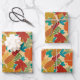 Rote, orangefarbene, gelbe, grüne und aquamarine, farbige Herbstblätter in hellbeige Farbe.