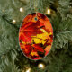 Farbige Blätter im Herbst, goldfarbenes orangefarb Keramikornament