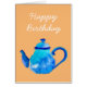 Eine niedliche Aquarelltönung eines farbenfrohen blauen Teekopfes im niedlichen Illustrationsstil. Whimsical und niedlich für Teeliebhaber.