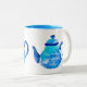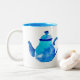 Eine niedliche Aquarelltönung eines farbenfrohen blauen Teekopfes in blauem Aquarellbilderstil. Whimsical und niedlich für Teeliebhaber.