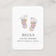 Moderne, saubere Visitenkarte mit einem farbenfrohen Baby-Blume-Fußabdruck-Aquarell-Logo - ideal für Geburt- und Postpartum-Doulas, Hebammen, Berater für Mutterschaft, Babyartikelmarken, Säugling-Massagetherapeuten und Neugeborene-Pflegespezialisten. Die zarten Regenbogenfüße verleihen Ihrer beruflichen Marke eine warme und einladende Touch. Dieses Design ist perfekt für jeden, der mit Müttern, Babys und Familien arbeitet - einschließlich Stillberatern, Baby-Boutiquen, pränatalen Erziehern, Betreuern nach der Geburt und ganzheitlichen Geburtshelfern. Passen Sie den Text einfach mit Ihrem Namen, Kontaktdaten und Anmeldeinformationen an. Auf hochwertigem Papier gedruckt, bietet diese Karte einen süßen und vertrauenswürdigen Eindruck, der Mitgefühl, Fürsorge und Professionalität widerspiegelt. Farbiges Logo für den Fußabdruck Anpassbar und einfach zu bearbeiten Ideal für Baby- und Mutterschaftsdienste Ein perfektes Spiel für warme, pflegende Marken