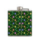 Farbige Blume, grüner Hintergrund, schwarz Flachmann