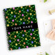Farbige Blume, grüner Hintergrund, schwarz Notizbuch