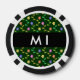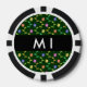 Farbige Blume, grüner Hintergrund, schwarz Pokerchips
