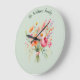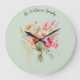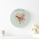Mit dieser hübschen Wanduhr fügen Sie Ihrem Zuhause rustikale Eleganz und Blumenzauber hinzu. Die Uhr fotografiert einen handgeklebten Strauß mit frischen Blume im Aquarell auf hellgrünem Hintergrund. Personalisieren Sie mit einem Namen oder einem anderen Text Ihrer Wahl, in eleganter Schrift Typografie. Ein ideales Geschenk für Küche und Zuhause im Landhausstil.