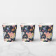 Farbenfrohe Sommer tropische Blumenmuster, Party Papier Tassen. Lebhafte Blume und fette Blattmuster auf marineblau-blauem Hintergrund.