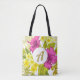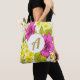 Farbenfrohe und fette Retro-Optik mit lila Blumenbezug mit Monogramm Totbeutel.
