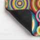 Dieses Mauspad hat ein Bauhaus-Design aus verschiedenen Gruppen konzentrischer Kreise in den 70er Jahren Farben.