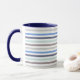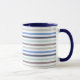 Diese marineblaue Combo-Tasse weist farbenfrohe Streifen in blau, blassgrün und braun auf.
