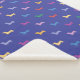 Das ist ein sehr buntes und skurriles Deckendesign. Es verfügt über mehrfarbige, Cartoon-Dackeln in einem lustigen Muster vor blauem Hintergrund. Das macht eine großartige, flauschige Decke für jeden Dackel- oder Hundebesitzer.