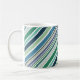 Diagonale geometrische Mustervorlage mit beige, grün, grau, lila, blau, marineblau und türkisfarbenen Streifen auf weißem Hintergrund