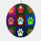 Ein farbenfroher Hundepuppmuster in Rosa, Orange, Blau, Gelb und anderen Farben.