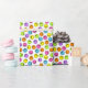 Orangefarbene, rosa, lila, grüne, blaue und gelbe Emoji-Gesichter auf einem weißen Hintergrund bedecken dieses Verpackungspapier.