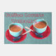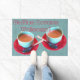 Dieses 24" x 48" Doormat wurde mit einem nahen Foto mit zwei farbigen Espressotassen, Untertassen, Löffeln und Vorlagentexten entworfen. Eine gute Idee für einen Kaffee Liebhaber Hauswärmung oder Renovierung Geschenk. Foto ©Patricia AZ Phillips