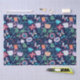 Farbenfrohe exotische, glitzernde Textur-Blume in einem nahtlosen Muster auf dunkelblauem Hintergrund. Es gibt passendes Packpapier und ein Band.