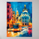 Eine lebendige fauvistische Stadtlandschaft von Madrid mit dem beleuchteten Metropolis-Gebäude entlang der Gran Vía bei Nacht. Reiche ausdrucksstarke Farben und dynamische Pinselstriche bringen Wärme und Bewegung in die spanische Hauptstadt, perfekt für Reisende und moderne Innenräume.