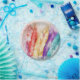 Sehr farbenfrohe moderne Papiertafel mit Aquarellkunst aus roten, gelben, lila und aquamarinen Federn. Ideal für jeden Anlass. Matching Produkte sind erhältlich.