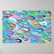 Farbenfrohe Fish Abstrakt Paint Blue Pink Red Green Poster. Kaufe deine noch heute!