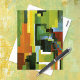 Eine Postkarte mit dem abstrakten Gemälde des deutschen expressionistischen Malers August Macke, farbige Formen II (1913). Er war stark vom Kubismus beeinflusst. Geometrische Formen in grün und orange.