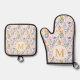 Personalisierte Frühlingsgarten Blume Wasserfarben Muster Monogramm Ofen Mitt & Pot Holder Set