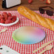 Farbige gelbe Orange Blau Grün Rosa Lila Pappteller