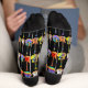 Farbenfrohe Psychedelic Acoustic & Electric Guitars Pattern Black Socks Treten in den Stil mit diesen fetten und lebendigen schwarzen Socken mit einem psychedelischen Gitarrenmuster in auffälligen, bunten Designs. Dieses einzigartige musikalische Design mit akustischen und elektrischen Gitarren strotzt durch helle, trippige Farbtöne, die eine Aussage machen. Diese Socken sind perfekt für Gitarristen, Musiker, Bandmitglieder oder alle, die Lieben machen, und bringen eine spielerische, aber künstlerische Drehung in den Alltag. Sie sind ein großartiges Geschenk für Geburtstage, Weihnachten, Musikfestivals oder als sonderbares kleine Geschenke für Musikliebhaber jeden Alters. Original-Kunstwerke der Künstlerin Catherine Sweetman machen diese Socken zu einem einzigartigen Mode-Accessoire, das Kunst, Musik und Persönlichkeit verbindet.