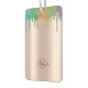 Farbenfrohe Glitzer-Tropfen auf einer Rose goldenen Hintergrund.