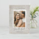 Die Save the Date Painted Gray and Gold Sparkle Card ist eine raffinierte und elegante Wahl für Ihre Hochzeit. Diese Karte zeichnet sich durch ein auffälliges Design aus, mit einem Single-Foto auf der Vorderseite, gerahmt durch einen grau gestrichenen Hintergrund mit Imitaten goldenen Glitzern, die eine Touch von Glamour und Feierlichkeit zu Ihrem Save the Date. Die Vorderseite der Karte ist wunderschön gestaltet, mit einem großen Platz für Ihr Foto, sodass Sie einen sinnvollen Moment mit Ihren Gästen teilen können. Das Foto wird von einem subtilen, grau gestrichenen Hintergrund gerahmt, der ein sanftes und einladendes Aussehen schafft, während die Imitate goldenen Glitzern eine luxuriöse Touch, die Ihren Save the Date hebt. "Save the Date" ist in einem handgeschriebenen Schriftart geschrieben, der Karte ein persönliches und intimes Gefühl verleiht. Es gibt einen eigenen Raum, der mit Ihren Namen, Ihrem Hochzeitstag und Ihrem Standort angepasst werden kann. Diese Anpassung erlaubt Ihnen, ein Save the Date zu erstellen, das einzigartig für Sie ist und Ihren Stil und Ihre Persönlichkeit widerspiegelt. Die Rückseite der Karte bietet zusätzliche Funktionalität, die einen Platz, um Ihre Hochzeitswebsite-Adresse. Dieses Feature eignet sich ideal, um Gäste zu weiteren Informationen über Ihren großen Tag zu führen, einschließlich Reisedetails, Unterkunftsmöglichkeiten und Ihr Geschenkregister. Mit der Save the Date Karte "Painted Gray and Gold Sparkle" verkünden Sie Ihre Hochzeit stilvoll. Es ist die perfekte Kombination aus Eleganz und persönlicher Touch, um sicherzustellen, dass Ihre Gäste ihren Kalender abgeben und sich auf Ihren besonderen Tag freuen.