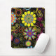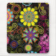 Farbenfrohe Retro-Blume und Wirbel auf schwarzem Hintergrund. Weitere Mousepad Designs von ArtOnWear.