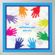 Farbige Handdrucke von Kindern mit blauen Rändern Poster